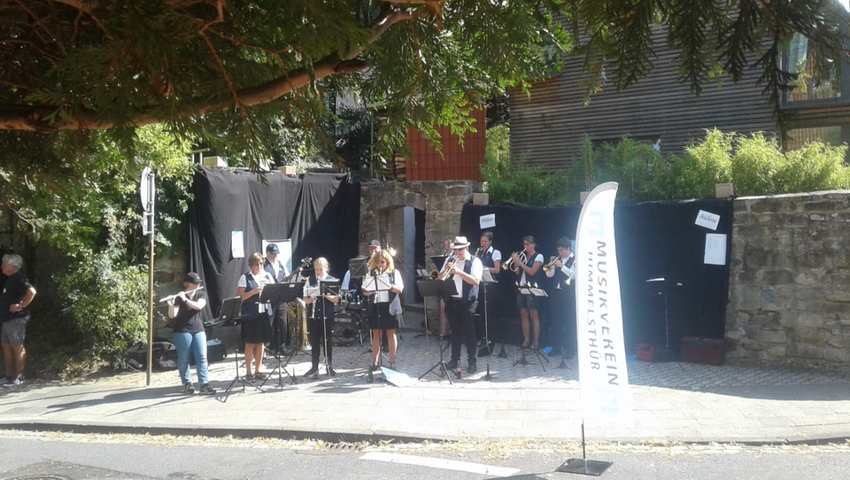 Am 10.07.2021 konnten wir unseren ersten Auftritt in größerer Besetzung und ohne Auflagen durchführen. Der CDU Ortsverband Himmelsthür lies sich die Gelegenheit nicht nehmen für ihre Wahlwerbung mit dem Musikverein für Aufmerksamkeit zu sorgen. Von 11-13 Uhr musizierten wir vor dem Café Union in der Fußgängerzone in Hildesheim. Der Vorsitzende Thomas Brandes bedankte sich nachträglich für den Einsatz, hatte die Aktion doch zu erheblich mehr Besuchern geführt. Für uns ist das eine tolles Dankeschön, zeigt sie doch eindeutig, dass wir mit unseren Stücken für Aufsehen gesorgt haben.